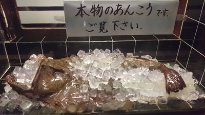 お店の入り口に、本物のあんこうがディスプレイされていました(ー_ー)!!
