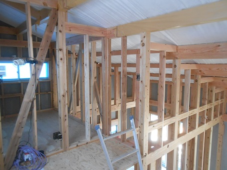 週末の上棟に向け、土台伏せが行われておりました。