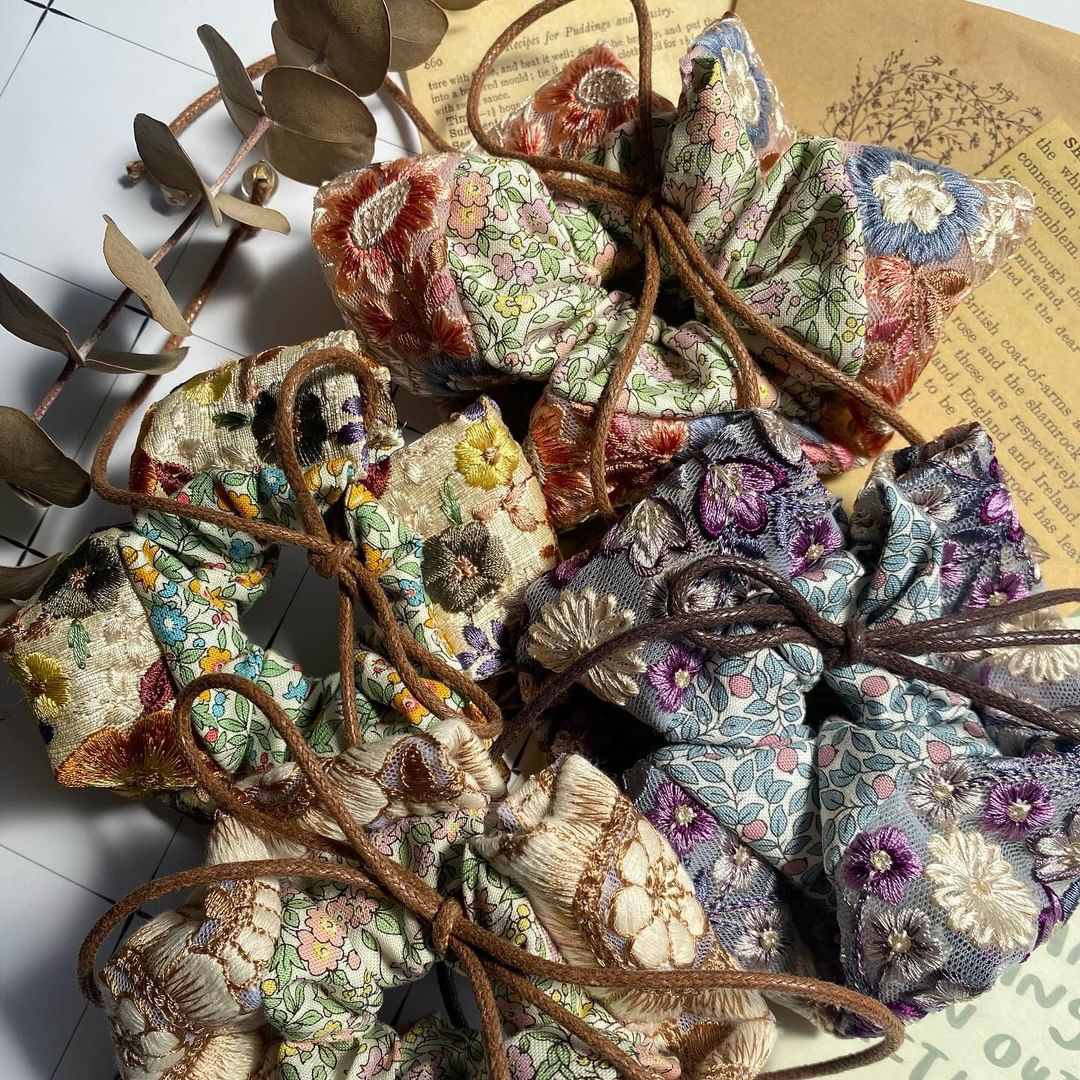 インド刺繍リボンを使用したアクセサリーや小物を販売しております。春の新作のシュシュや、トレンドのフリル付きのスマホショルダーなどたくさんお持ちします。心がわくわくするような、お気に入りのリボンが見つかりますように。