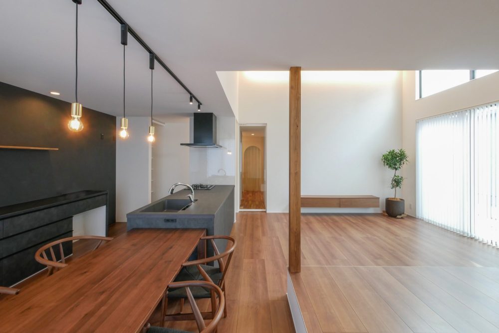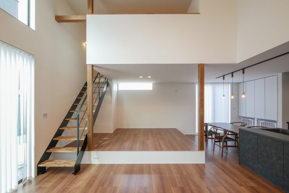 吹き抜け空間のある20帖以上のLDKに、5.5帖の小上がりコーナーをプラス。