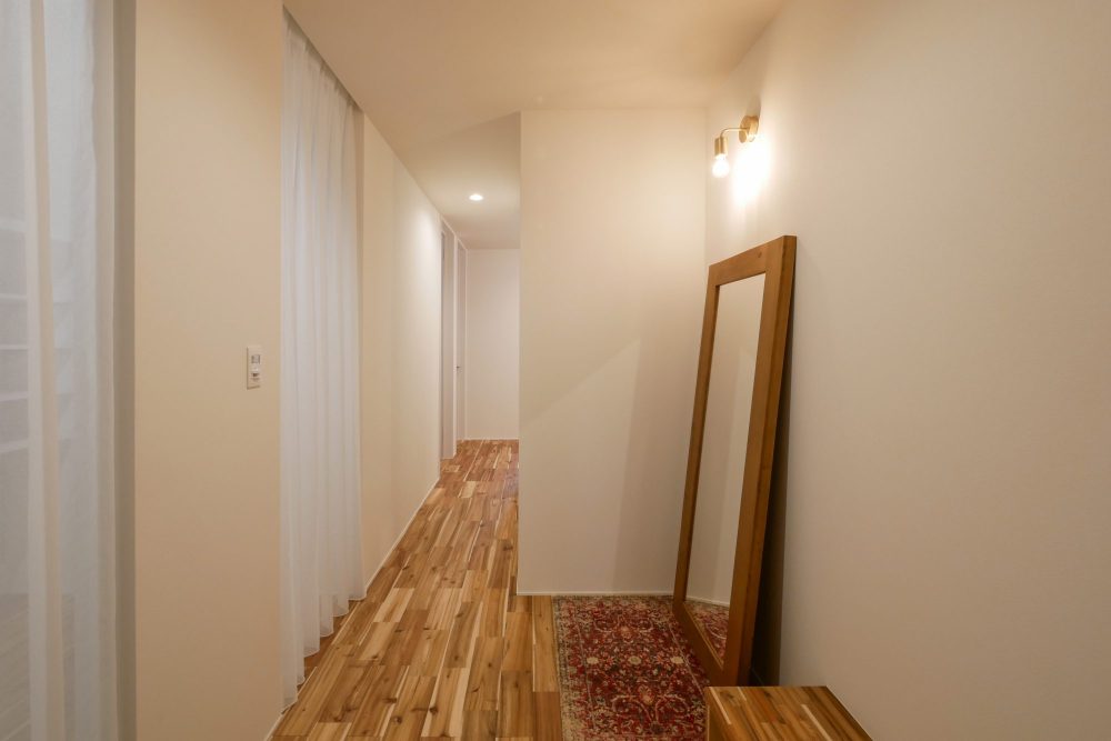 居室と廊下を隔てて生活音を分散させることができる、廊下のある間取りの平屋です。
