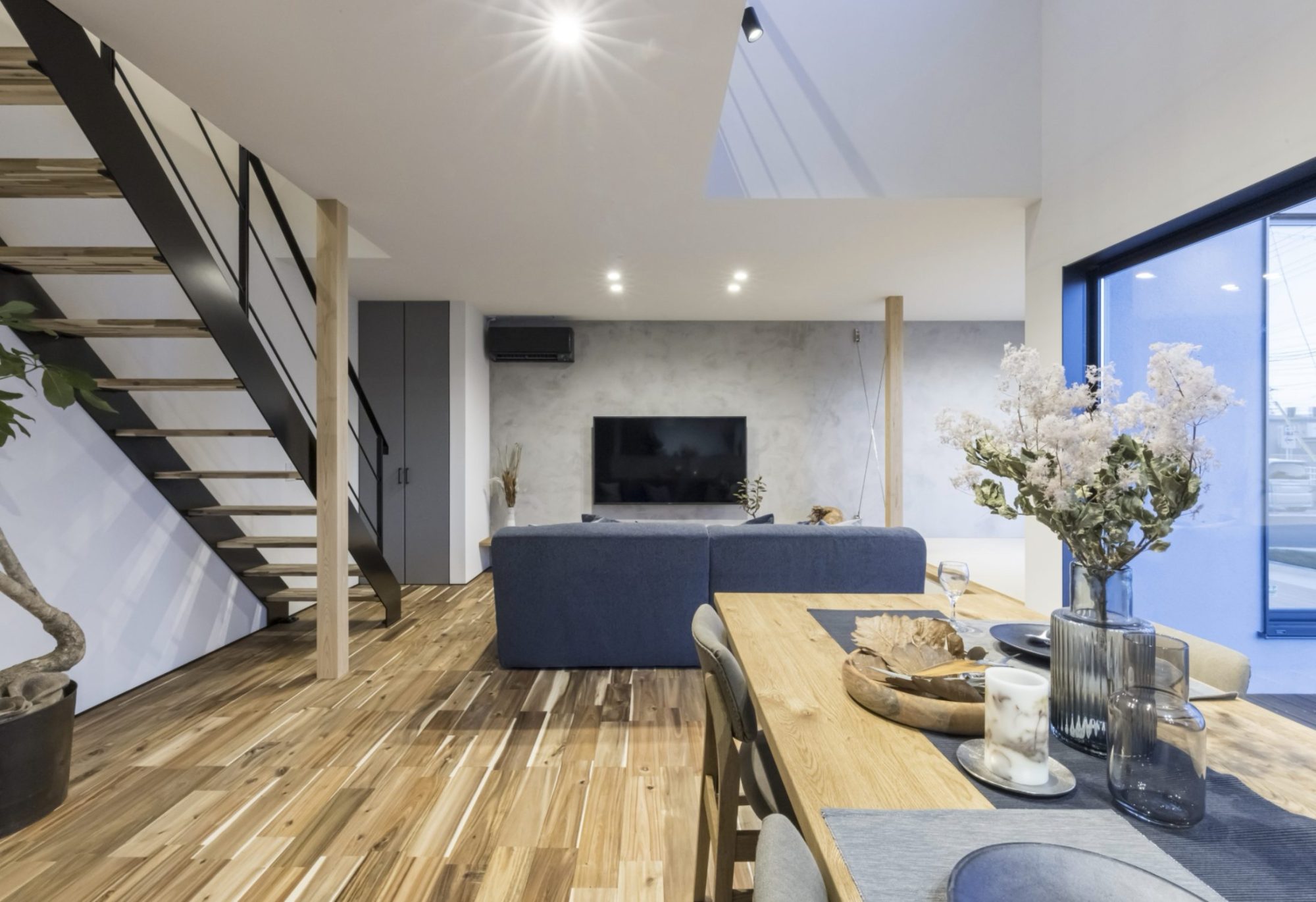 2階リビング、アウトドアリビング併設の開放的なLDK。