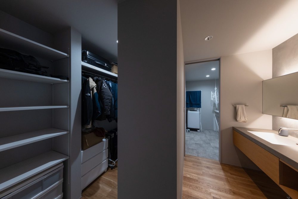 ランドリールーム[3帖]からウォークインクローゼット[4帖]までを最短に設置。