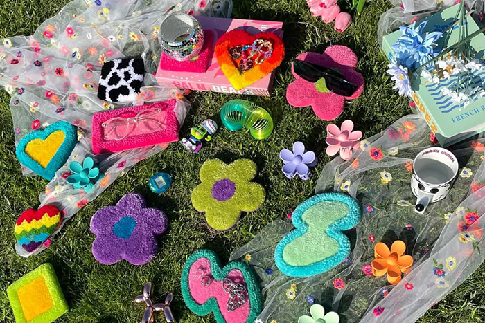 気持ちが明るくなるような個性的でカラフルなアイテムをタフティングというラグを作る技法でひとつひとつ手作業で丁寧に製作しております。