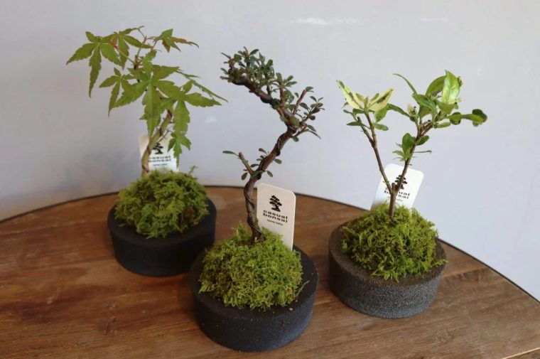 和の趣を感じさせる苔玉盆栽は、秋のインテリアにぴったり。
