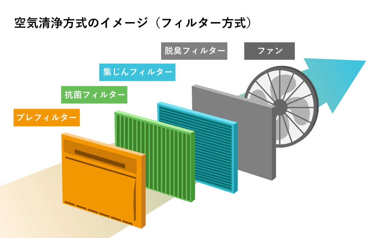 空気清浄機のように、お家の中に入る空気をフィルターにて除去。