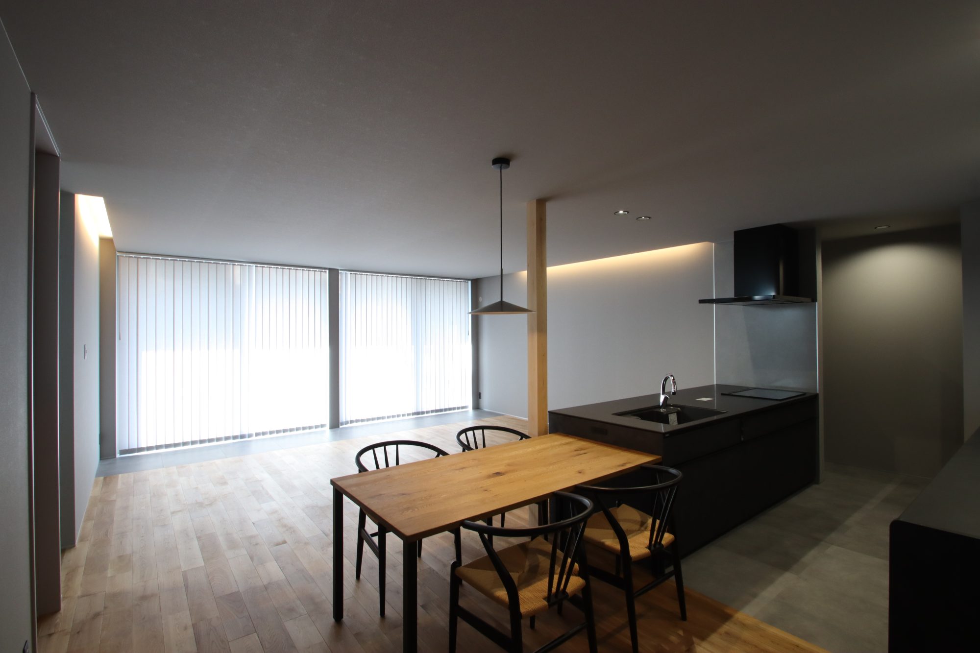 LDKの照明は、キッチンは手元が見やすいようにダウンライトとペンダントライト、リビングは間接照明のみの照明計画になります!