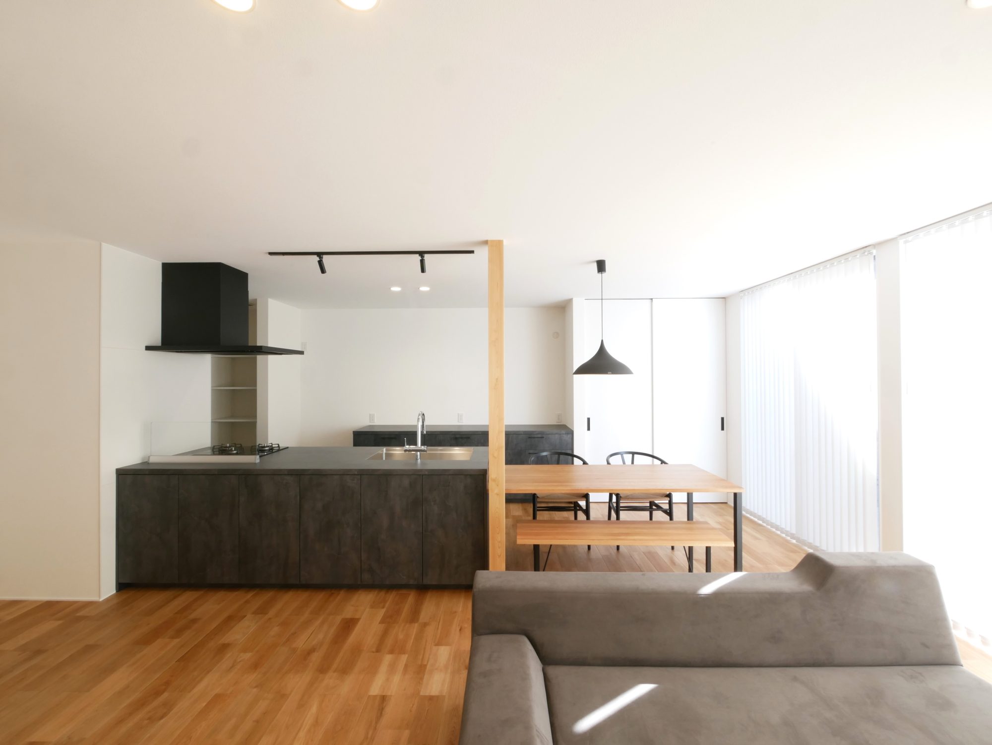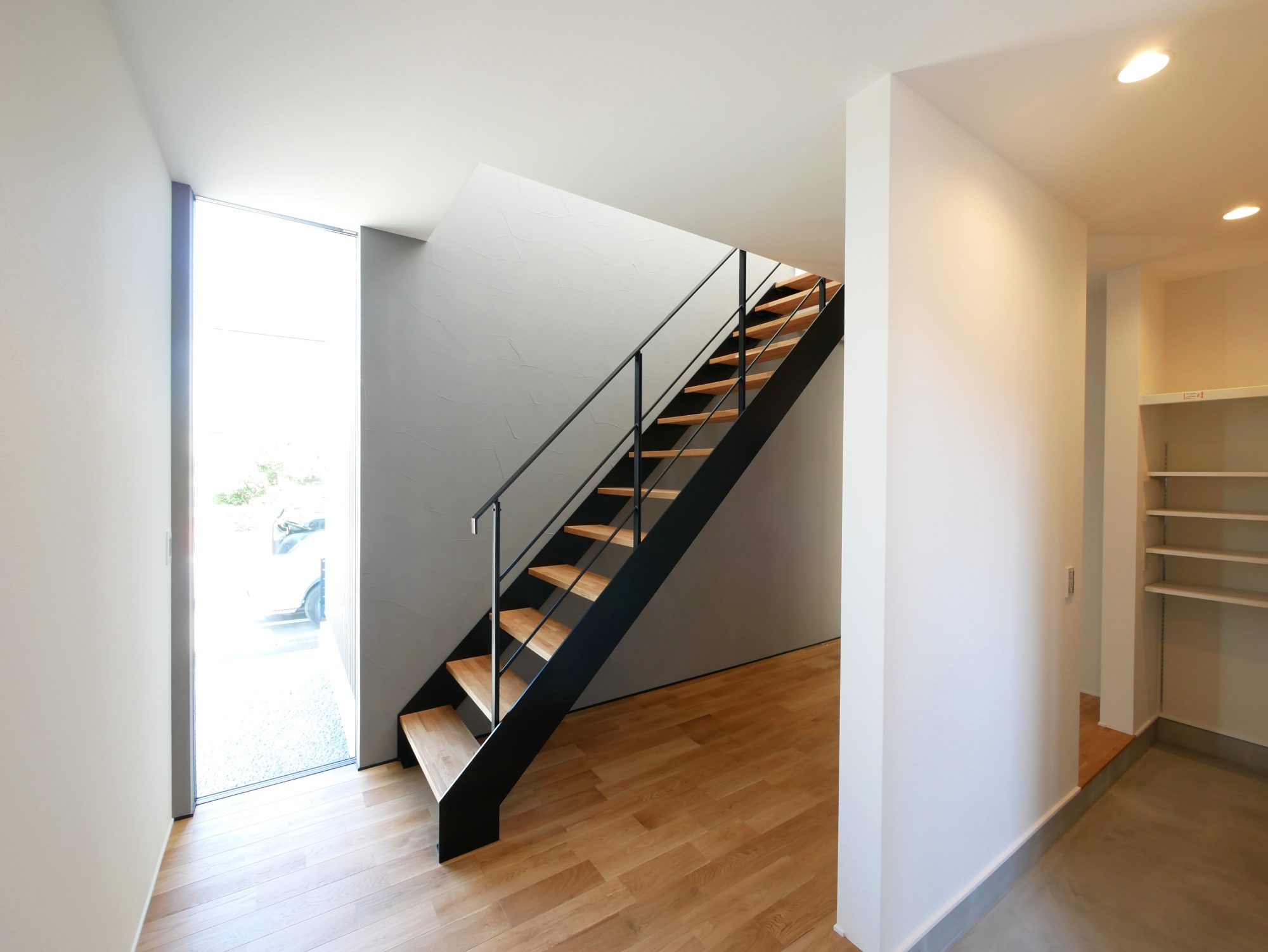 玄関から見える窓には、植栽を植える予定があるそうです*