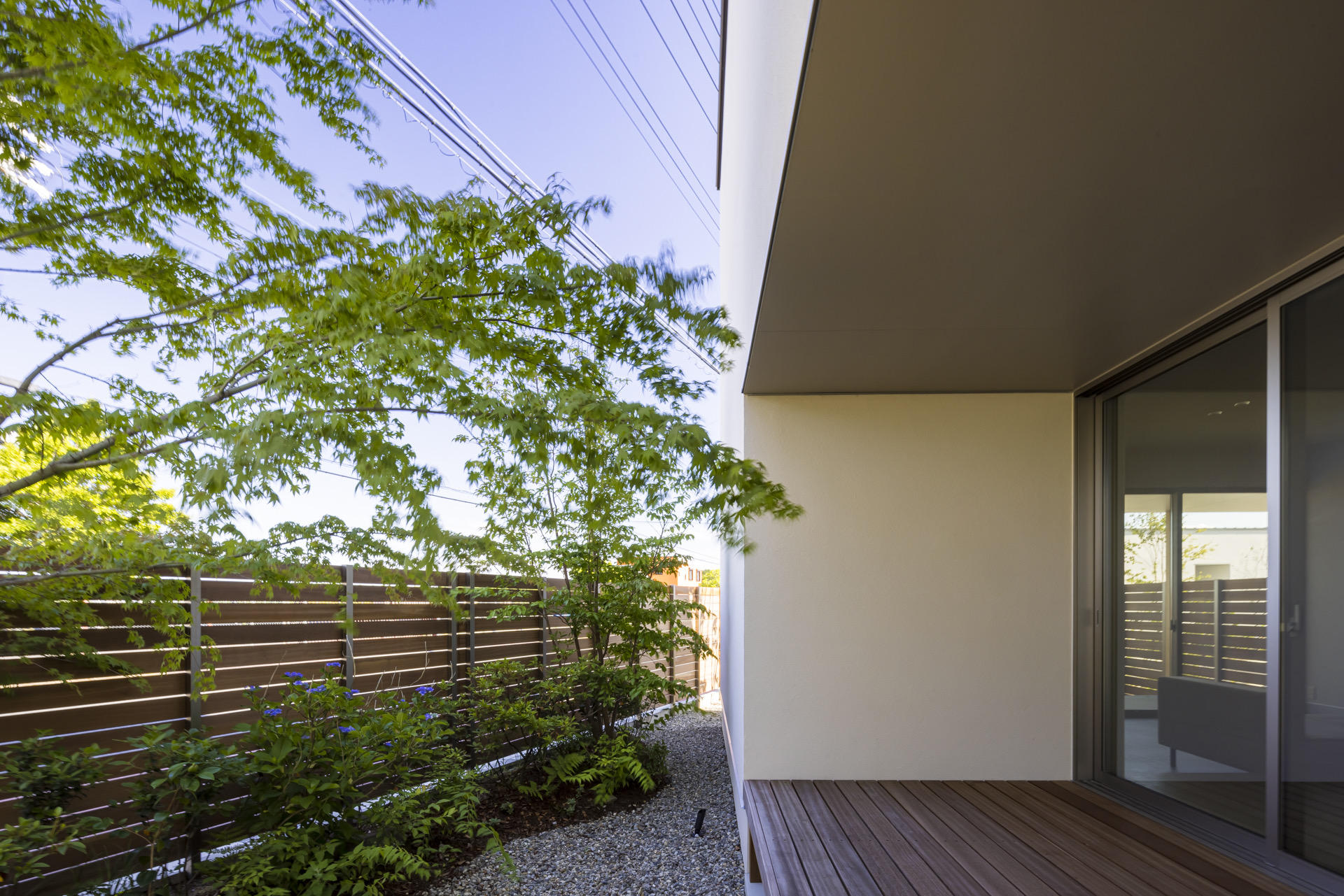 外からの視界を遮りつつ、中からは植栽を楽しめる空間に。