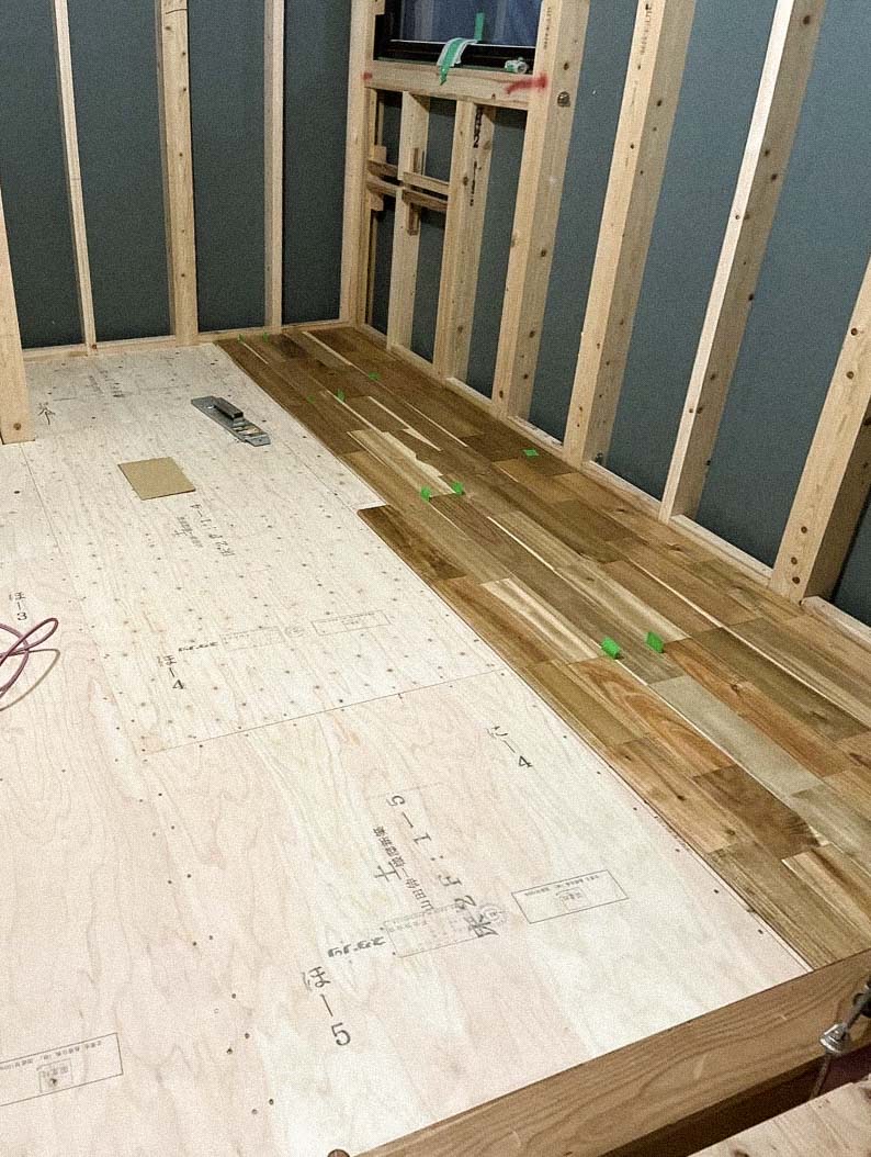 一枚一枚、木の表情を見極めながら丁寧に貼り進めていく姿には、