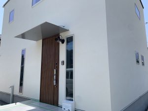玄関上にはラミナという庇を付けています。とてもスタイリッシュですね。