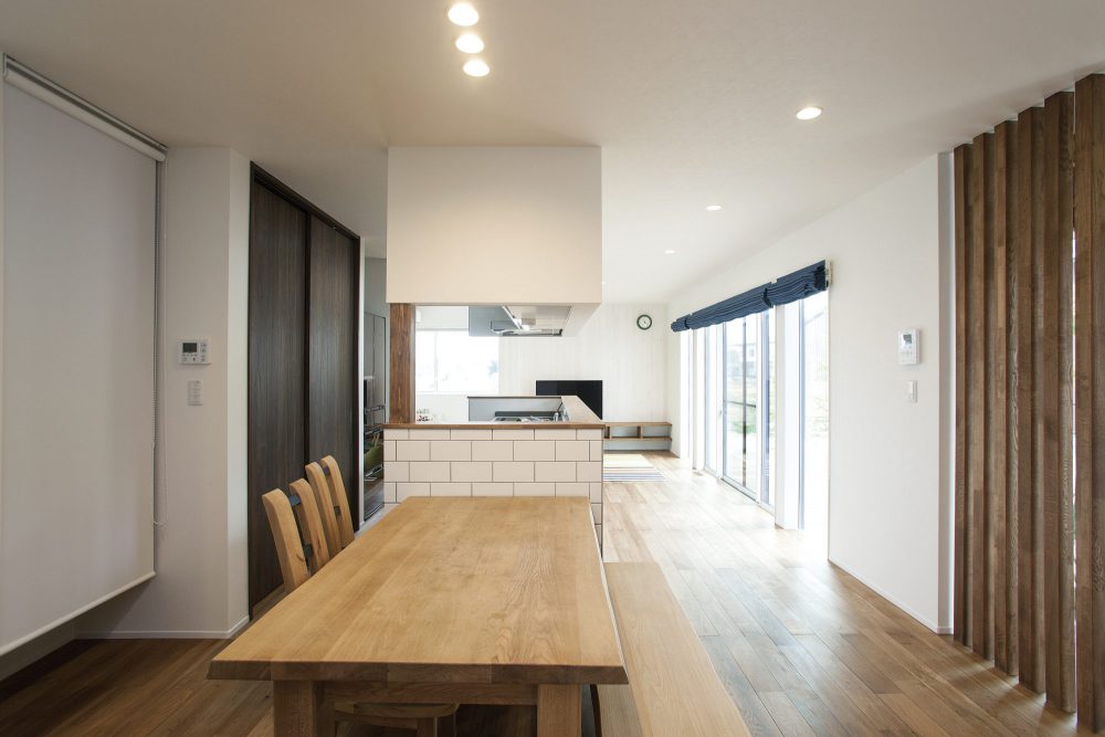 ダイニングとキッチンとリビングがストレートにつながる間取りプラン